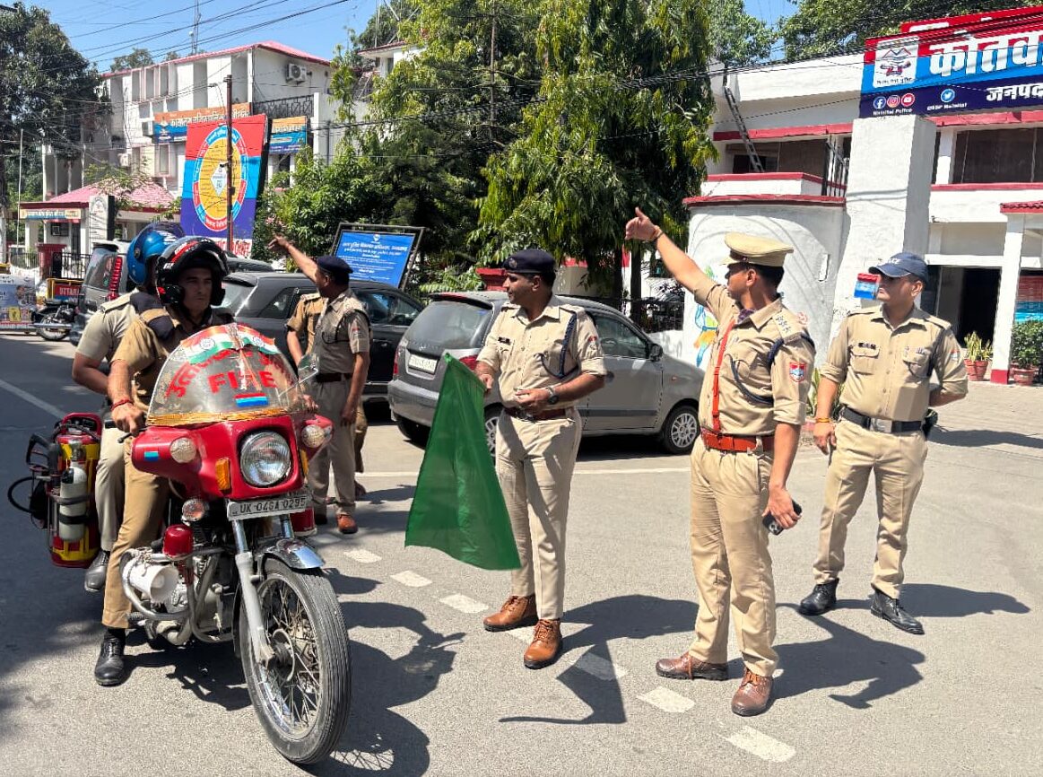 हल्द्वानी – फायर स्टेशन हल्द्वानी में 14 अप्रैल से 20 अप्रैल 2026 तक अग्निशमन सेवा सप्ताह मनाया जा रहा है। इस अवसर पर कार्यक्रम आयोजित कर शहीद अग्निशमन कर्मियों को श्रद्धांजलि अर्पित की गई और जागरूकता अभियान की शुरुआत की गई। कार्यक्रम की शुरुआत में अपने कर्तव्यों का निर्वहन करते हुए शहीद हुए अग्निशमन कर्मियों को याद करते हुए दो मिनट का मौन रखा गया और पुष्प चक्र अर्पित किए गए। इसके बाद डॉ. मंजूनाथ टीसी ने अग्नि सुरक्षा सप्ताह के तहत फायर सर्विस वाहनों को हरी झंडी दिखाकर जागरूकता रैली के लिए रवाना किया। रैली फायर स्टेशन हल्द्वानी से शुरू होकर कोतवाली, नैनीताल रोड, कोलटेक्स तिराहा, पनचक्की, मुखानी, सुशीला तिवारी अस्पताल और टीपी नगर होते हुए पुनः फायर स्टेशन पहुंची। इस दौरान बैनर और पंपलेट के माध्यम से आम जनता को आग