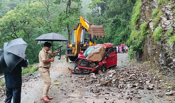 इस दौरान दो से तीन अन्य वाहनों पर भी पत्थर गिरे, लेकिन उनमें कोई जनहानि नहीं हुई। पुलिस और लोक निर्माण विभाग की टीमों ने मौके पर पहुंचकर मार्ग को सुरक्षित बनाने और यातायात बहाल करने का प्रयास किया।